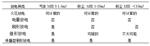 根据这一考虑并得到广泛经验的支持,得出表2的各项指标。它们代表了目前普遍接受的易燃材料静电气体放电的点火潜力。