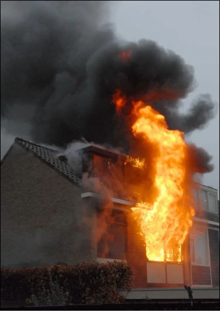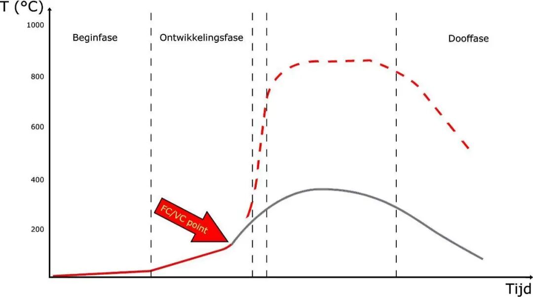 每一名消防员都知道消防基础知识中所教的火灾发展曲线,以前我们只教一条火灾发展曲线,现在有两条。一条是旧的曲线,定义为“通风良好的火灾”(见图1)。本文将围绕这一曲线展开讨论。它表示房间内发生的火灾具备了如下条件: 足够的火灾荷载且起火点位于房间的适当位置 良好的通风 图1通风良好的火灾发展曲线(图:Karel Lambert) 通常情况下,由于最初起火的可燃物无法产生足够高的热释放率,无法点燃附近的另一个可燃物,火灾便会自行熄灭。在这些情况下,经常有很多烟但几乎没有热。虽然有足够的可燃物,可以使火灾发展到轰燃,但可燃物的分布导致轰燃不会发生,火在初期就熄灭了。 最近,Oostkamp的消防队就处理了一起这样的火灾,一幢房子燃起熊熊烈火,一家人都被困在了二楼。到场后,整栋楼都被浓烟笼罩。浓烟挡住了住户们的逃生路线,除此之外,一楼的窗户都是单层玻璃的。消防员判断此时火场通风不足,若强行打破窗户可能引入大量空气,导致轰燃。 他们使用45mm水带进行火场内攻,随着救援工作的进行,消防员们发现客厅里的烟气温度并不高。这些冷烟气可能就是通风控制型火灾产生的,由于缺乏空气,火灾的热释放率非常低(见图2),几乎没有热量产生。 通过热成像仪,消防员找到了起火的位置。起火源是一块一直在充电的平衡车,旁边有一个坚实的橡木橱柜。橱柜呈发黑烧焦状,但平衡车的热释放率不足以完全点燃木柜。平衡车完全烧坏了,火势进入到下降阶段。火灾产生了大量的烟,但热量很少。通过使用排烟机,消防员把烟从楼里排出,救出了这一家人。烟雾温度不高,但毒性很强,在没有呼吸器的情况下想逃离烟雾是不可行的。 不过,若是换一种情景则结果会完全不同。假设客厅的另一边放着一个纸板箱,平时里面存放着平衡车。这个纸板箱旁边有一个三个座位的大沙发。假设平衡车放置在盒子的内部或顶部,然后它着火了,沙发也很可能会被点燃。沙发会产生足够的热量,在客厅引起轰燃。到达后,消防队将面临一楼全面燃烧的大火,所产生的烟气流到二楼,温度会高出10倍。我们只能期待,卧室的门是否能保护这个家庭直至救援人员到达。 在这两种情况下,唯一不同的变量是在起火时,平衡车(初始燃烧物体)的位置,客厅里的其他东西都一样。一种情况会导致大量烟气衰减,另一种情况导致房屋烧毁,可能还会有几名被困人员死亡。为了使火灾达到轰燃,需要在合适的位置上放置足够的可燃物。 图2当空气不足时,火灾从红线转为灰线,称为通风控制型火灾。(图:Karel Lambert) 当通风不足导致无法发生轰燃时,属于通风控制型火灾。火会维持很小的状态,直至自行熄灭,若是出现额外的通风情况,将有一个不同的曲线,如图2所示。 然而,本文是关于图1所示的通风良好的火灾。大多数消防队员称之为温度发展曲线,这种曲线说明了温度随时间的变化。 关于这一说法,我们可以问几个问题:曲线究竟表示的是哪个温度?或者换言之:我们在哪个位置放置温度计,才能得到上述图表所示的温度?很多消防员不能回答这个问题。 你知道正确答案吗?本文将不时地直接向读者发出提问。在阅读下一节之前试着仔细思考这个问题。文章证实你的答案了吗?如果答案是肯定的,那很好!如果没有,想想你的答案为什么不正确。不管怎样,你都会学到一些东西。 02 火灾的热释放速率 每一起火灾都有特定的热释放速率,我们可以这么描述:想象有一个三个座位的沙发,假设沙发因一只遗落的烟头而着火,沙发的四分之一面积正在燃烧,火焰距沙发高约50厘米。你能在脑海中想象出这个画面吗? 火焰的热量将大量向上流动,在那里,它会加热烟气层,一部分热量辐射回沙发,使沙发发热。沙发(可燃物负荷)的高温会导致沙发的一部分开始热解,这意味着,沙发失去了部分重量。 如果把沙发放在秤上,我们会看到质量慢慢下降,其科学术语是质量损失率(kg/s)。可燃物越热,热解气体形成的越快(天平上的重量下降的越快)。热解气体其实是气体可燃物,火焰是由这些热解气体产生的,火焰通过周围空气中的氧气来燃烧热解出的气体。 我们知道燃气炉是通过打开阀门来操作的,排出的气体被火花点燃,通过控制阀门,可以形成或大或小的火焰。在真实的火灾中,阀门的功能被传递到可燃物上的热量所取代。可燃物越热,每秒释放的热解气体越多,每秒热解气体越多,火灾的热释放速率越高。 以上部分仅适用于燃料控制型火灾,在这样的火灾中,空气(氧气)充足,火灾的热释放率取决于热解气体的数量(质量损失率)。 当火灾变成通风控制型时,这意味着没有足够的空气来燃烧所有的热解气体,这些气体一部分流入到烟气层中,而未燃烧的颗粒则不断在烟气层中聚集,火灾的热释放速率受到空气的限制。如图2所示,火从红色线切换到灰色线。图1中也出现了这种情况,曲线突变之前,火灾已经变成了通风控制。两条火灾曲线都有一个通风控制段。 图1也可以描述为热释放速率-时间图,显示了初期阶段热量释放率是如何随时间变化的。初期是燃料控制阶段,其特点是热释放速率HRR非常有限,火势在整个发展阶段仍为燃料控制,但在轰燃过程中,变为通风控制。 全面发展的火灾是由通风控制的,在全面发展阶段,由于只有有限的空气可以通过通风孔进入房间,所以曲线趋于水平。 03 从火灾曲线中可以获取哪些