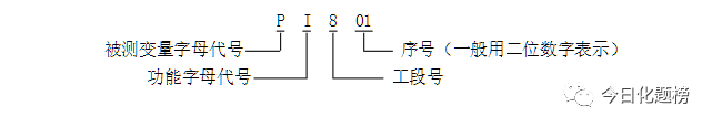 在检测控制系统中,一个回路中的每一个仪表或元件都应标注仪表位号。仪表位号由字母组合和阿拉伯数字编号组成。第一个字母表示被测变量,后继字母表示仪表的功能。数字编号表示仪表的顺序号,数字编号可按车间或工段进行编制,如下图所示。