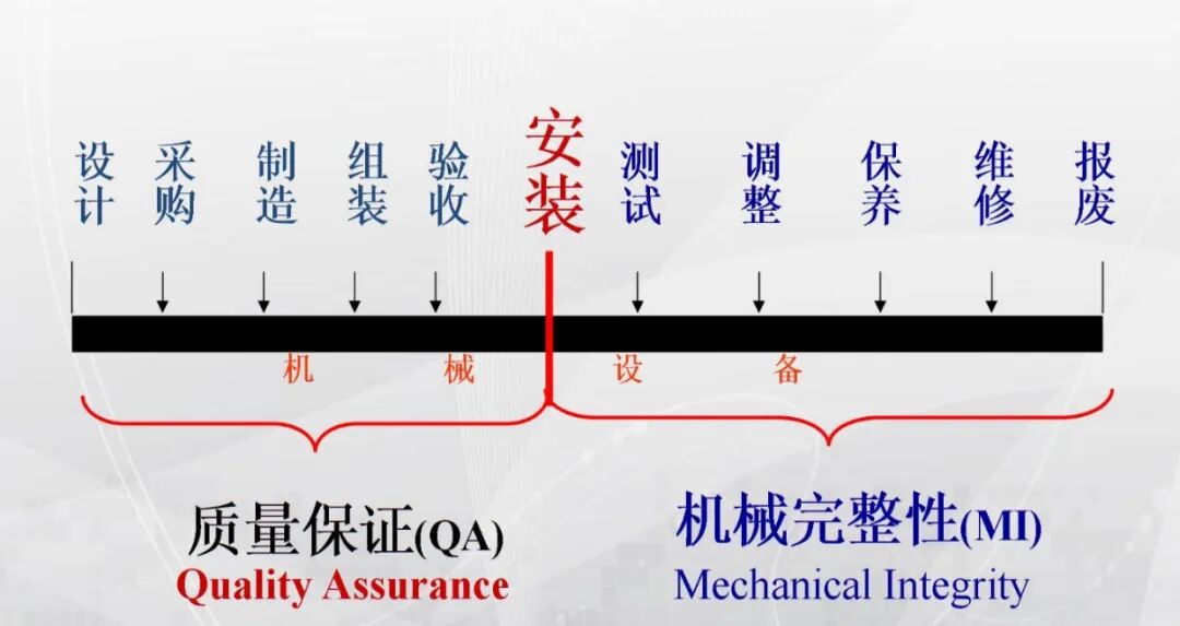 机械完整性(MI),是过程安全管理核心要素之一,是本质安全理念的集中表现,也是风险管理、培训、操作规程、启动前安全审查(PSSR)等要素的重点服务对象。美国职业安全与健康监察局(OSHA)对机械完整性的定义为:采取技术改进措施和规范设备管理相结合的方式,来保证整个装置中关键设备运行状态的完好性。