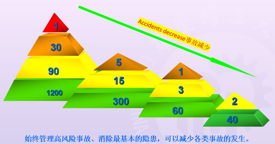 如果按照技术文件来考虑,科学的风险评价应该基于事故概率和后果两种因素,管理部门虽然重点想预防重大事故的发生,眼睛盯着这类事故的后果,但是事故的发生是有“金字塔”规律的。金字塔顶层的重大事故必然由其底部的损伤事故,以及更下层的轻微事故和未遂事故来作为基础,风险管理的要点恰恰是这些事故概率高,事故后相对较为严重的高风险事故,而不是顶部的最大事故(安全事故如此,环保事故也是如此)。只有把金字塔的底部的基础挤压的越来越小,顶部的灾难性事故发生的可能性才越来越小。换句话说,所有的重大泄漏都是从小泄漏开始的,管理只想避免重大的,但是不对小的防微杜渐,千里之堤终将毁于蚁穴。
