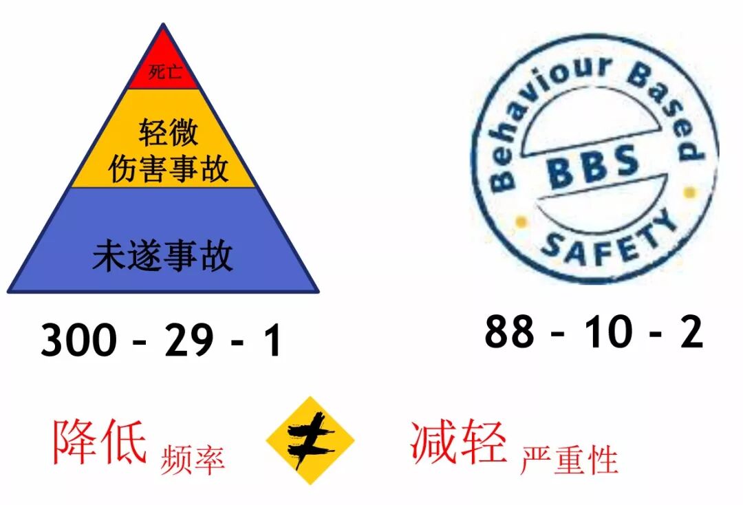 如图8所示,海因里希规则能够帮助降低事故发生的频率,但是对于死亡事故或重特大事故,则不能减轻其严重性。而HOP则可以做到这一点。因此,HOP比BBS更加有效。