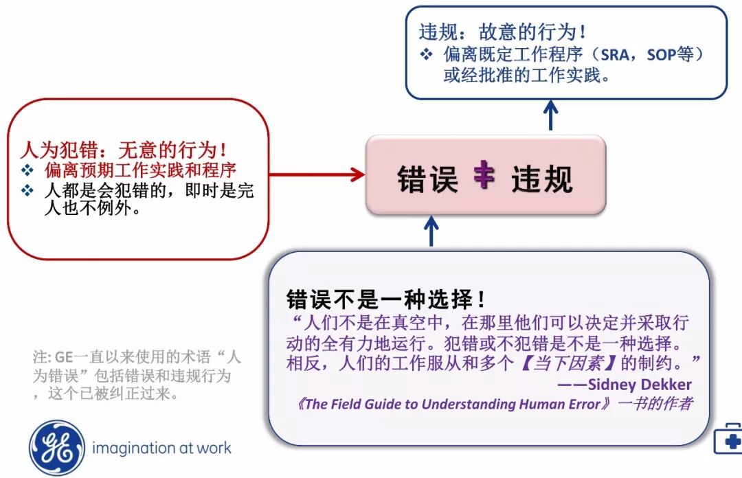 在GE,一直以来使用的术语“人为错误”包括错误与违规行为,现在已经被纠正过来,对不同的行为进行不同的处理。