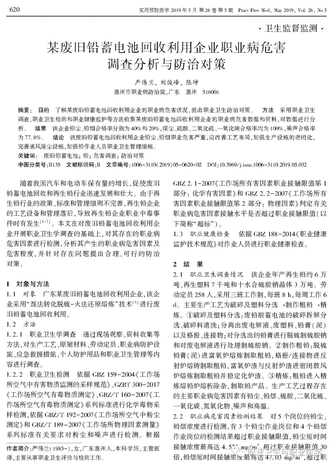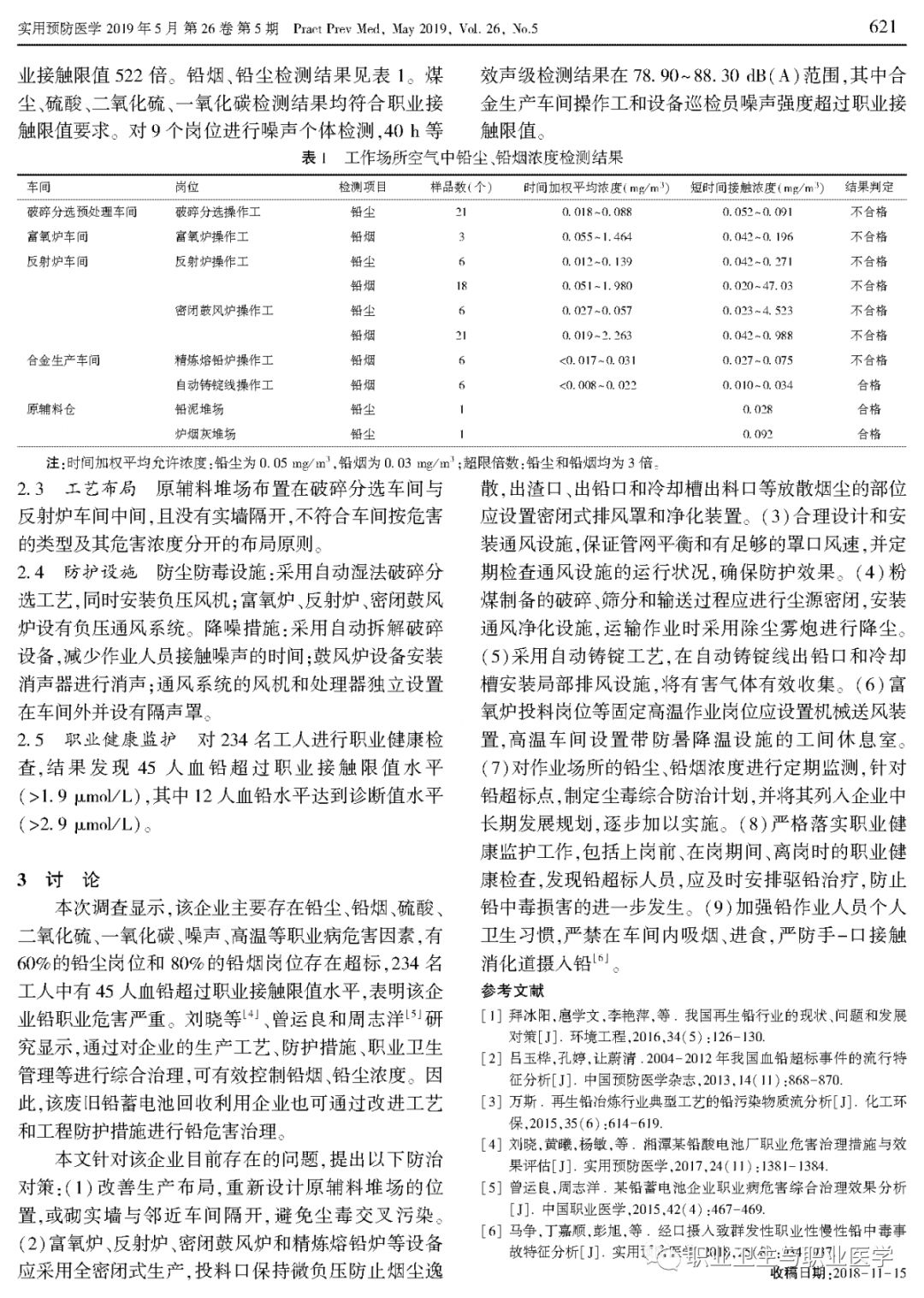 危害与识别:铅尘、铅烟、硫酸、二氧化硫、一氧化碳、氮氧化物、噪声和高温。